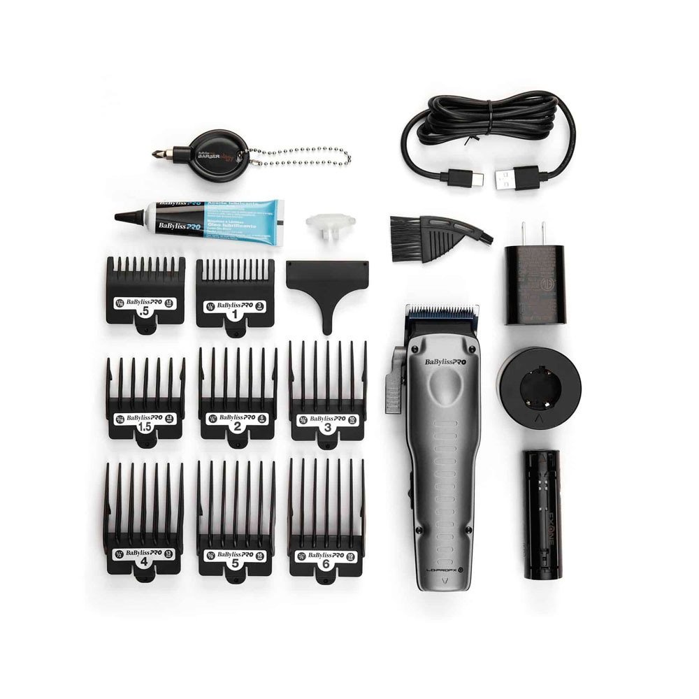 Super-flat, high-performance clipper with universal, replaceable battery, improved housing, reduced noise and vibrations. A tapered, rounded handle that fits even better in the hand. Improved N1 high-performance digital motor with high torque and double ball bearing for greater efficiency. It delivers over 516,800 cuts per minute (6,800 rpm). Brushless motor for a longer service life. 45 mm Metal Injection Moulded (MIM) Fade Blade made of Titanium in blue (FX8022BLE)Built-in oil reservoir for constant blade maintenance.Lower blade temperature.Zero-gap adjustable.R, replaceable lithium-ion batteryUp to 2.5 hours operating time.2 hours charging time.Button for quick battery charge. Button for quick battery removal.4-stage LED ring with battery charge level indicator and cycle switch to indicate remaining battery power.5-position adjustment lever: Extended, more ergonomic lever that opens wider (0.5 – 1.4 – 2.3 – 3.2 – 4.2 mm).Ultra-flat profile: ergonomic handle with grooves in which fingers can be perfectly placed.INCLUDES:FXONE batteryCharging station with universal voltage8 comb attachments. (N° 0.5 – 1 – 1.5 – 2 – 3 – 4 – 5 – 6)Blade guardReplacement blade padScrewdriverCleaning tool and lubricating oilThe LO-PROFX range of professional grooming tools has evolved even further and is now even available as an FXONE system. With a powerful clipper and trimmer with a universal, replaceable battery, this collection is the ultimate addition to your professional equipment. The very flat body has been further redesigned to further reduce vibrations and fit better in the hand. Digital motors, replaceable lithium-ion batteries, blue titanium blades and an extended taper lever ensure superior performance and the ultimate clipping experience.